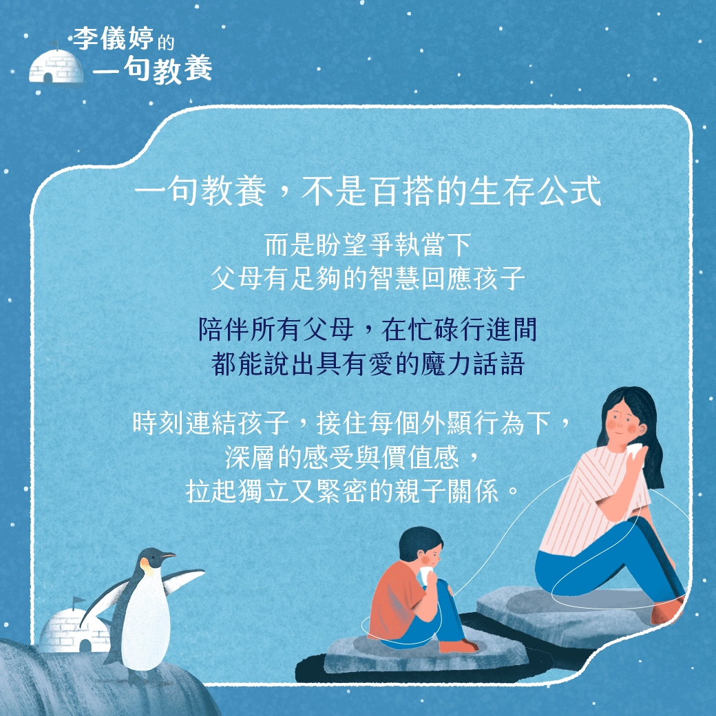 透過一句教養,幫助父母,在每個親子衝突當下,有足夠的智慧回應孩子忙碌行進間,也能說出充滿愛的話語,接住、連結孩子