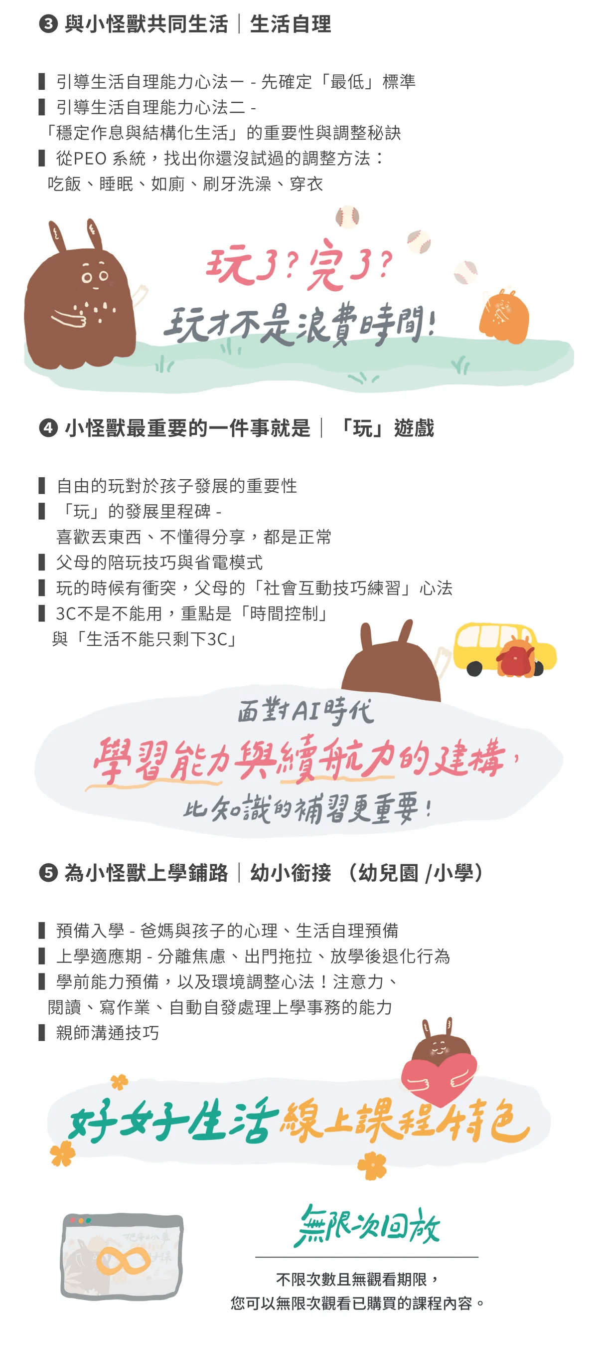 0-7歲依照年齡的「個人動作與認知能力」+「適當環境,工具預備方法」+「剛剛好難度的任務安排」