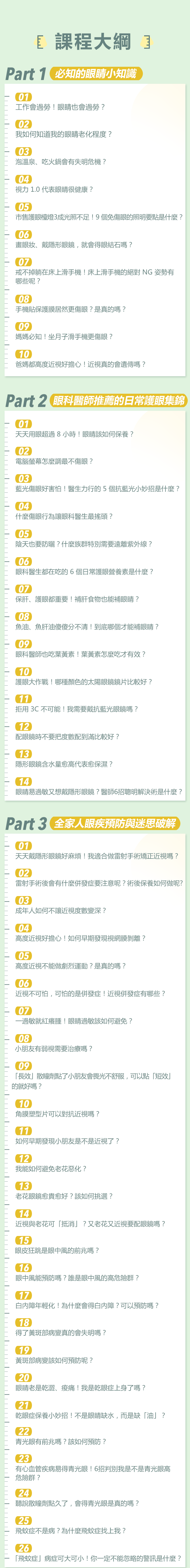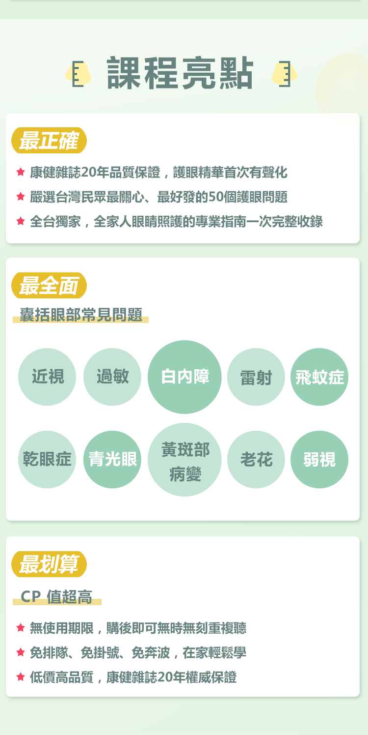 本次音頻課程主題為「全家護眼」,每則音頻長度約 5 分鐘,方便你隨時歲地收聽