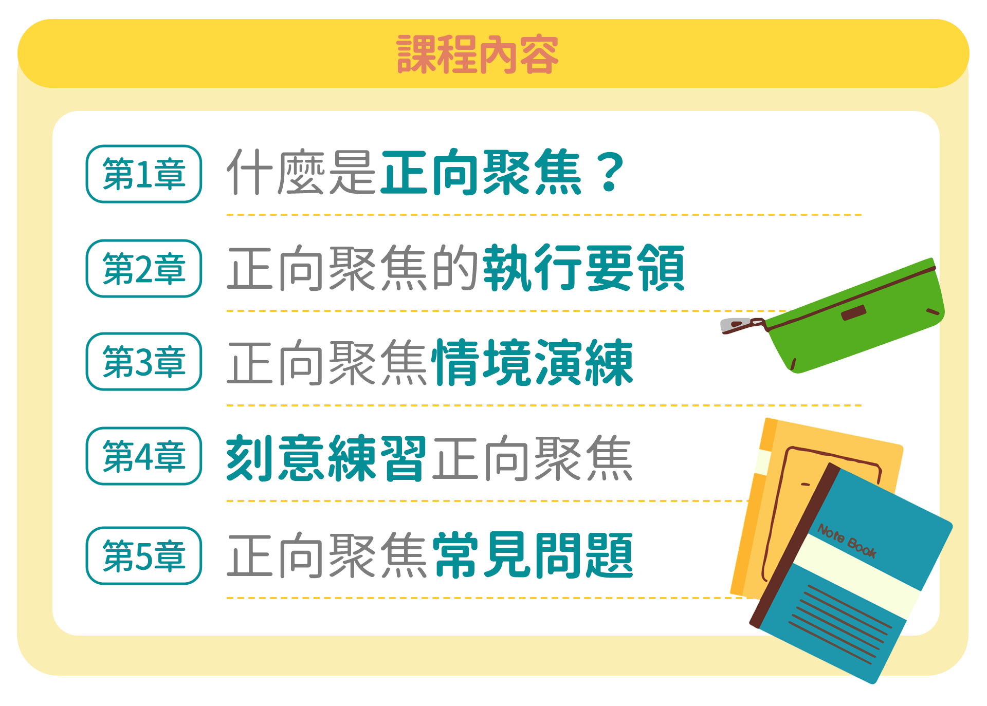 課程前半段,深入淺出介紹正向聚焦的精神和影響力,