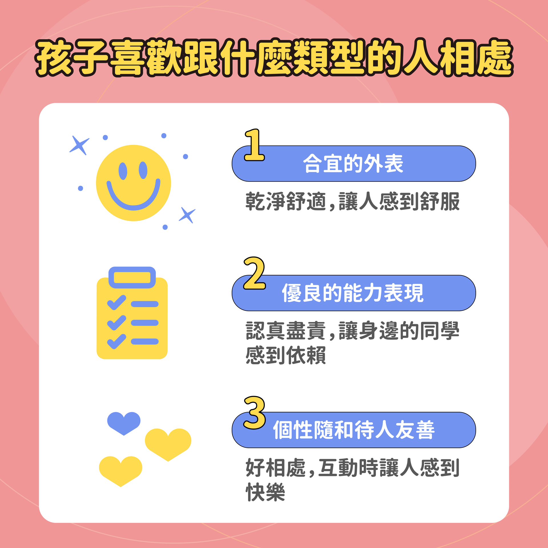 受歡迎的孩子被多數人喜歡和肯定,