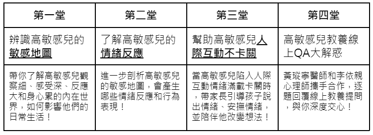 ※本課程為「遇上高敏感兒線上教養實戰工作坊──直播課程錄影版」