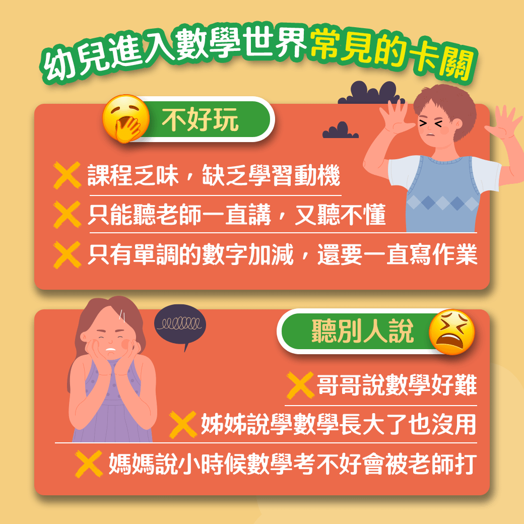 不不不,數學一點也不無聊。幼兒不想進入數學,是因為眼前的數學讓他缺乏學習動機。「缺乏學習動機」是因為走錯學習路徑,用錯學習方法。