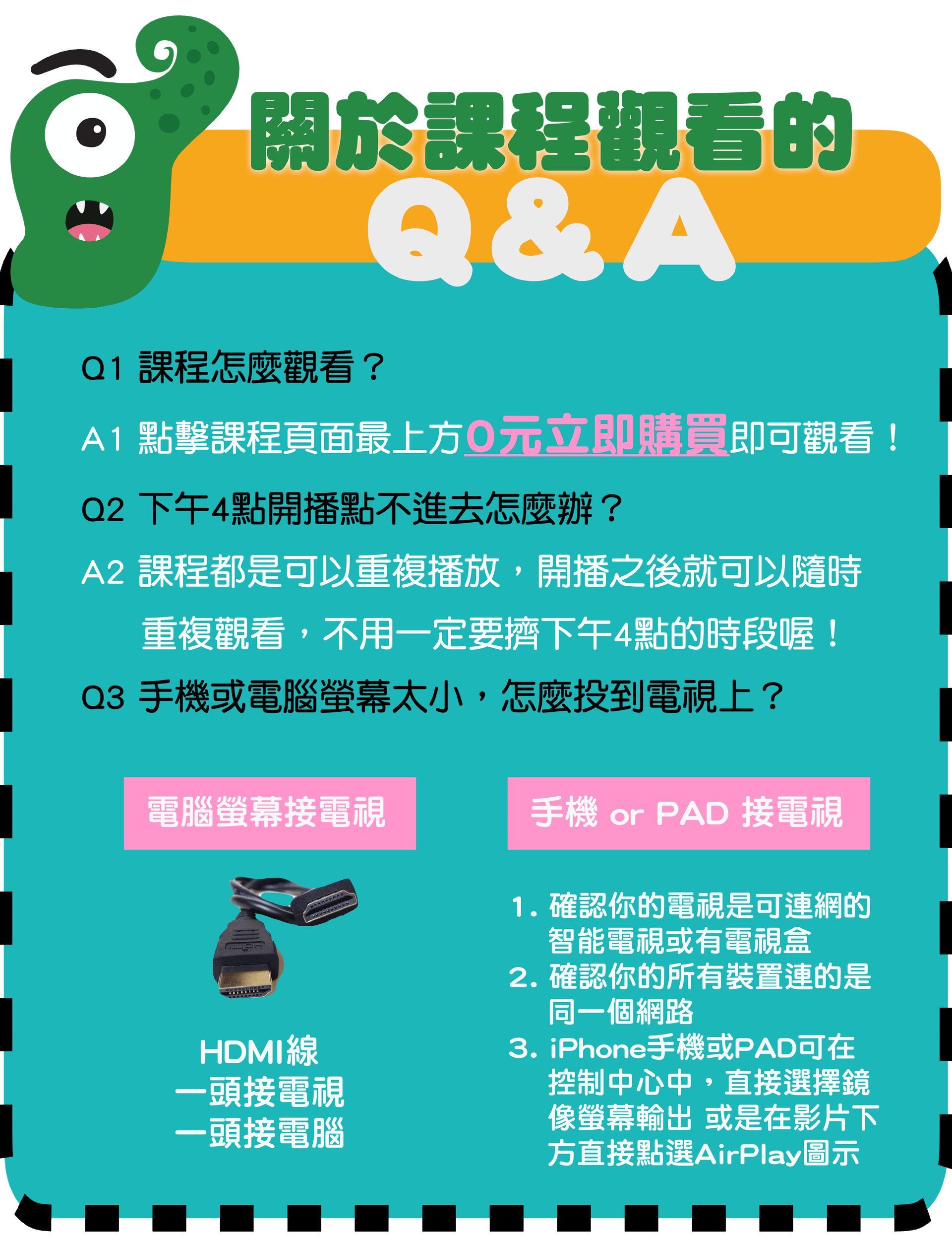- 投影觀看可能因為裝置、版本不同造成無法使用,此功能的體驗非本課程之保證,還請您見諒。
