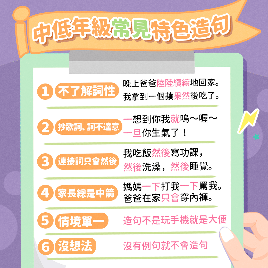 這門課程將生活情境融入造句教學,讓孩子學會教育部10大常用句型,還有食、衣、住、行、育、樂,以及最夯的SEL社會情緒學習!帶孩子打開感官,發現生活細節,輕鬆建立國語文基礎!