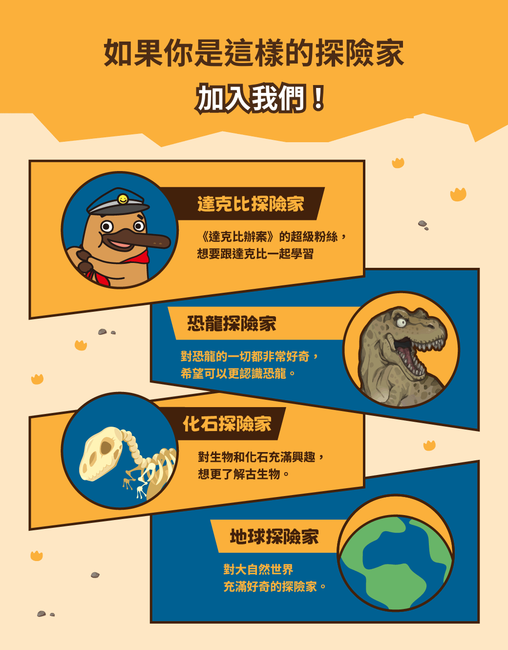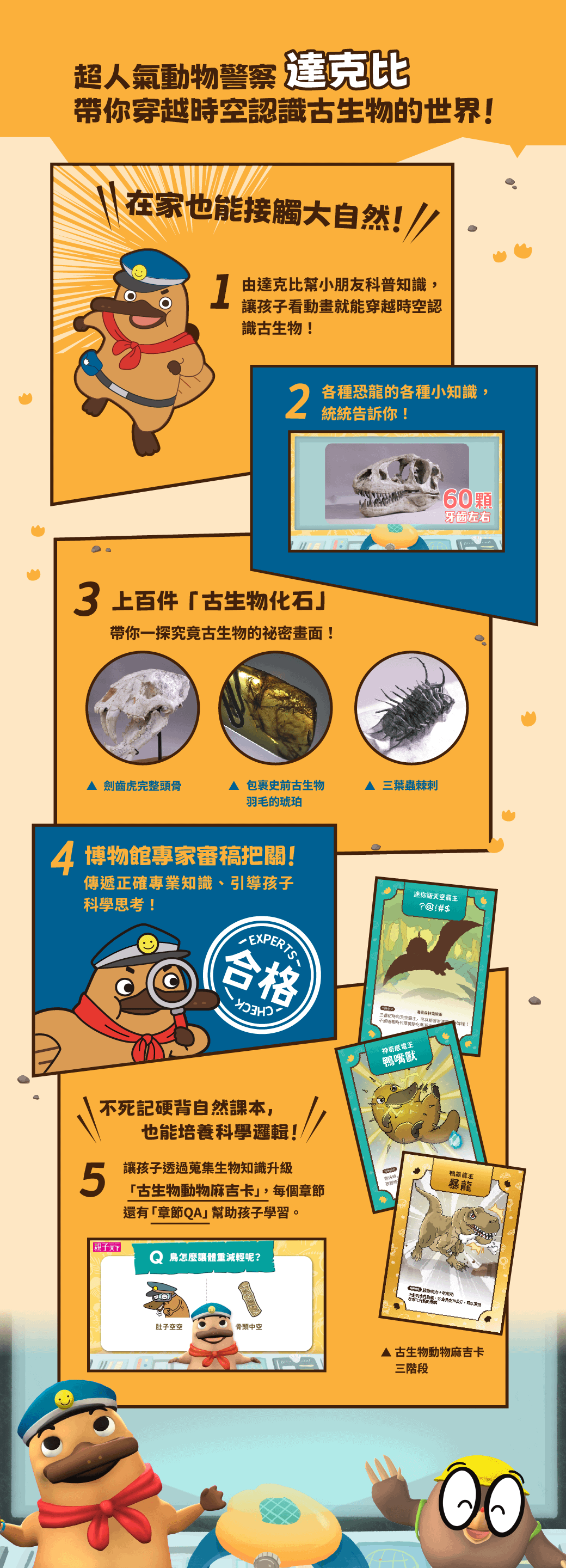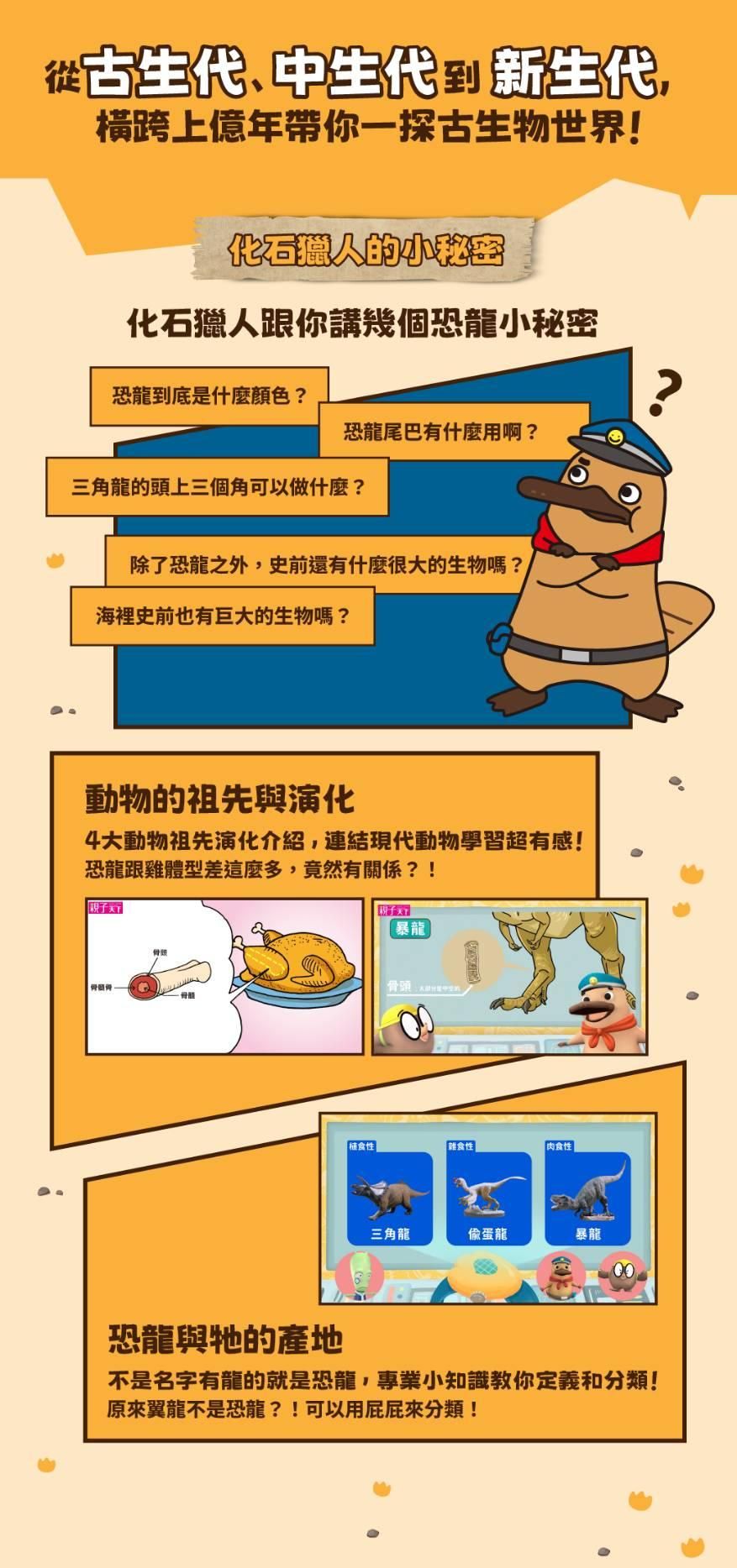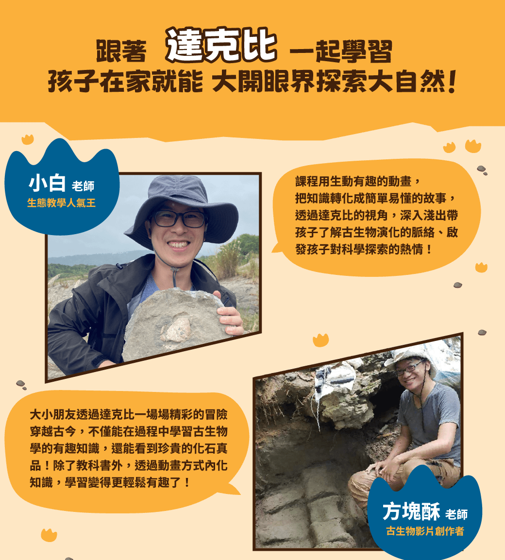 🔔本課程內容包含由線上學校結合化石先生專業視角,及真實化石畫面的獨家全新合作(11堂)以及 SeeMi《達克比與他的生物好朋友》系列精彩古生物動畫(9堂),超豐富內容給孩子最全面的自然科普知識學習!