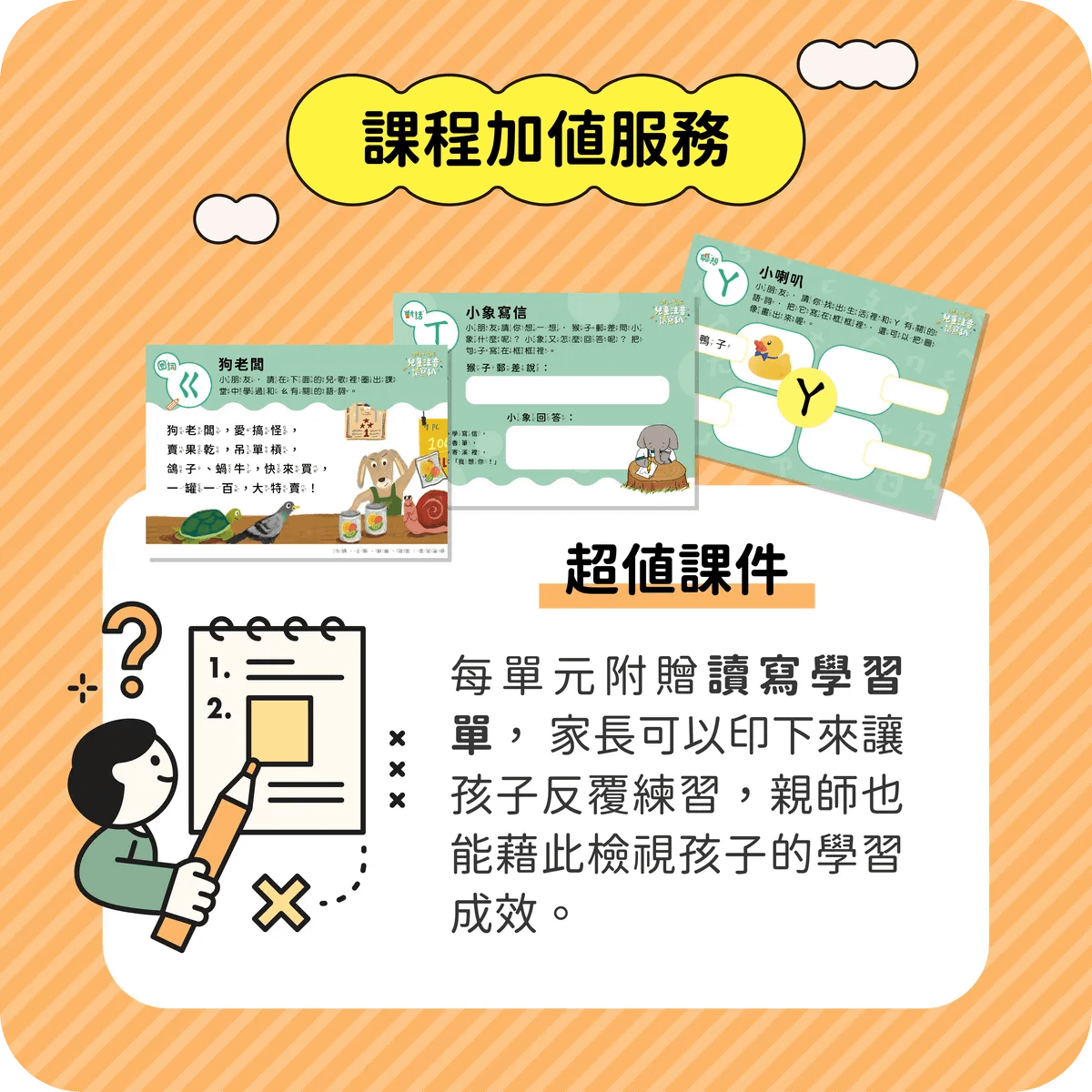 隨課程贈送由溫老師和魏老師精心設計的課後學習單,讓家長立即收穫孩子的學習成效。