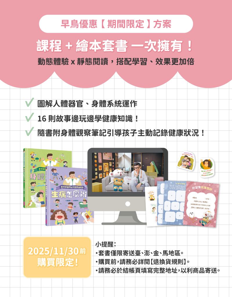 黃瑽寧醫師課程 + 繪本套書,原價 6,780,現在只要 4,270!