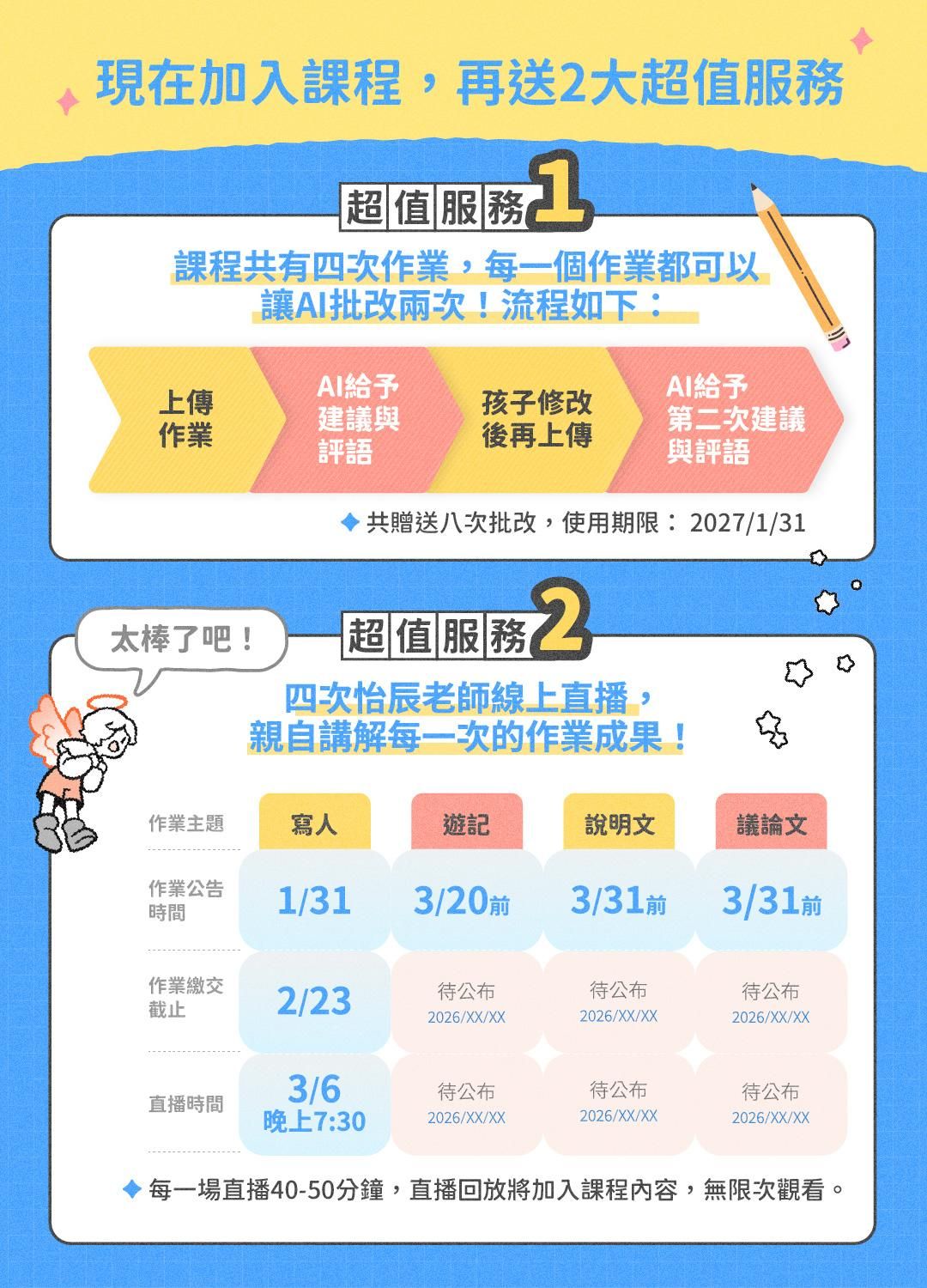 另有本課程與林怡辰老師2026新書預購的合購方案:本課程+『中小學生的寫作任務:實戰篇』