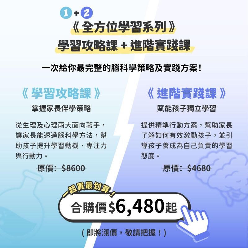 A:《進階實踐課》會簡要帶入《全方位學習攻略課》的部分核心觀念,讓沒有上過前一門課的家長也能理解與操作,因此只要你嘗試過各種教育方式卻一直覺得卡關,感到心累又希望孩子可以獨立學習,都適合直接加入這堂課程中。如果您同時加入兩門課程,學習效果將會更加完整與深入。