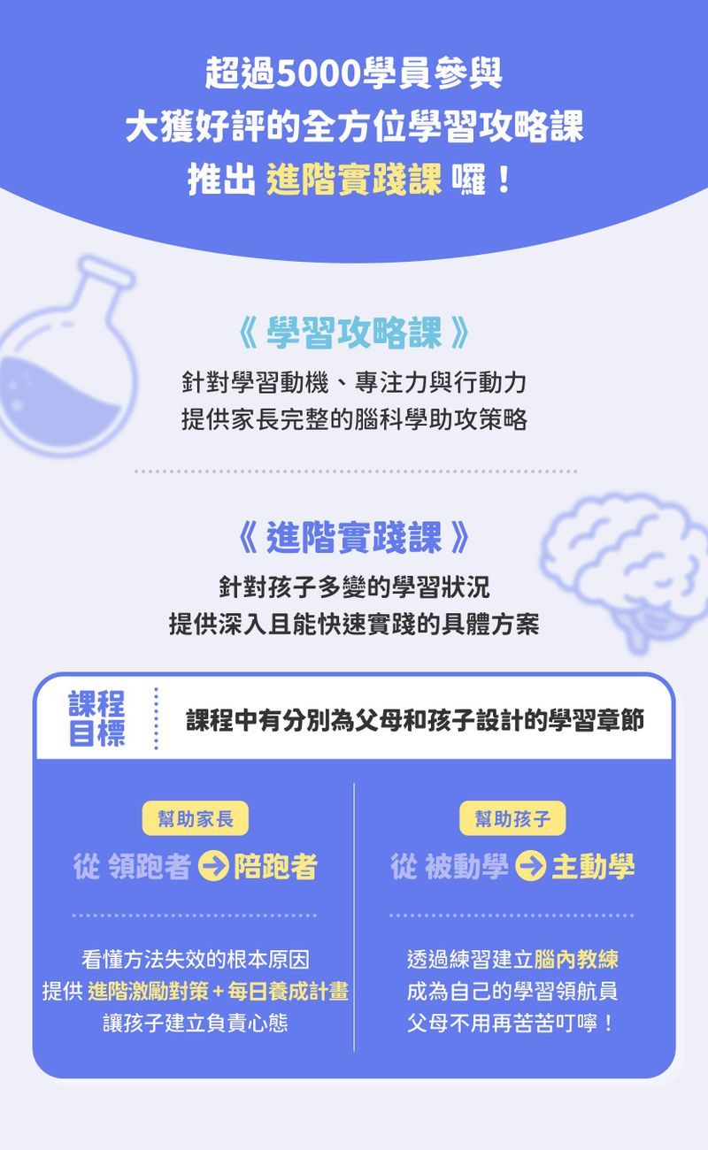這堂課程將幫助家長從 領跑者→陪跑者、讓孩子從 被動學→主動學!