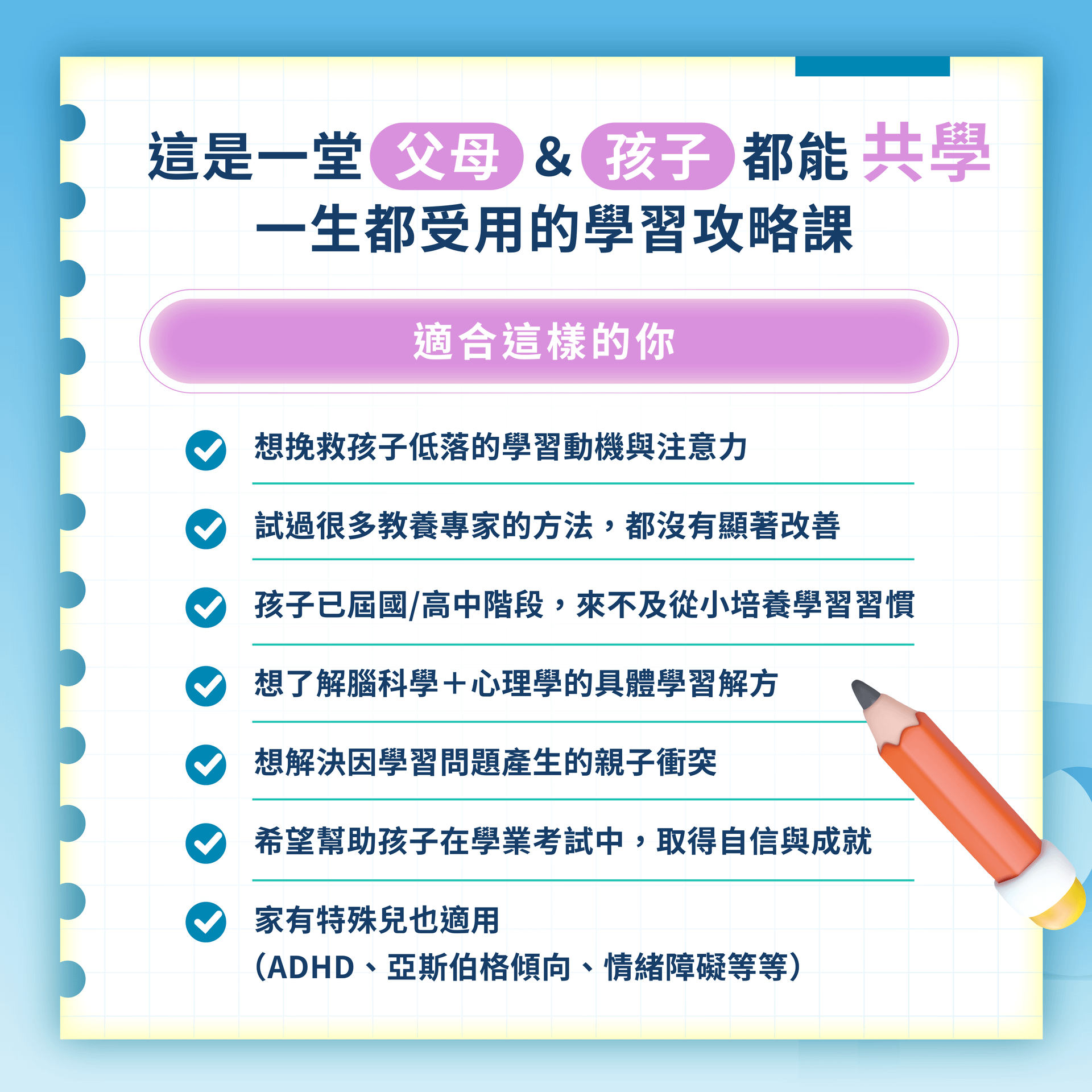 透過心理學+腦科學的方法,激發孩子的學習動機。