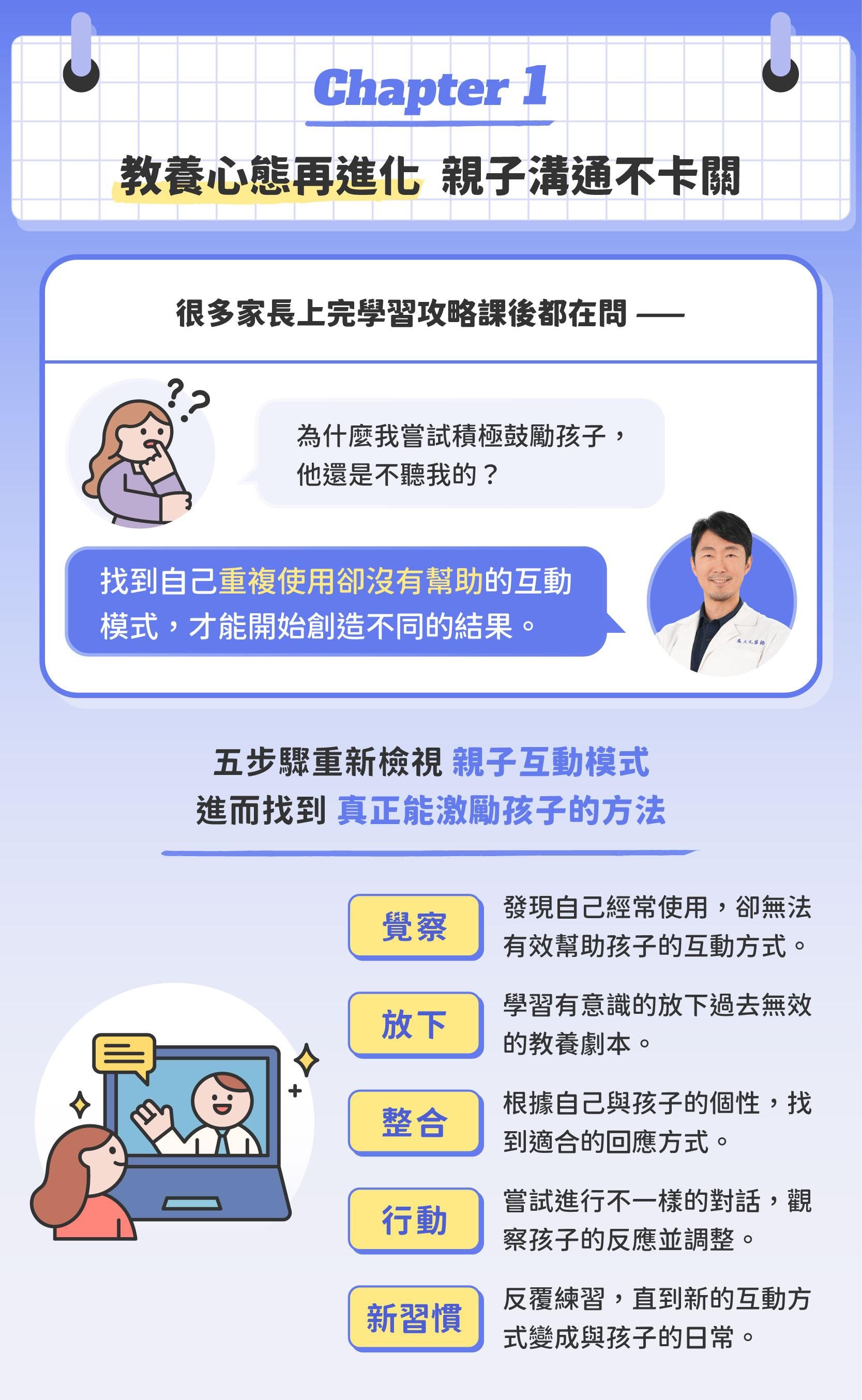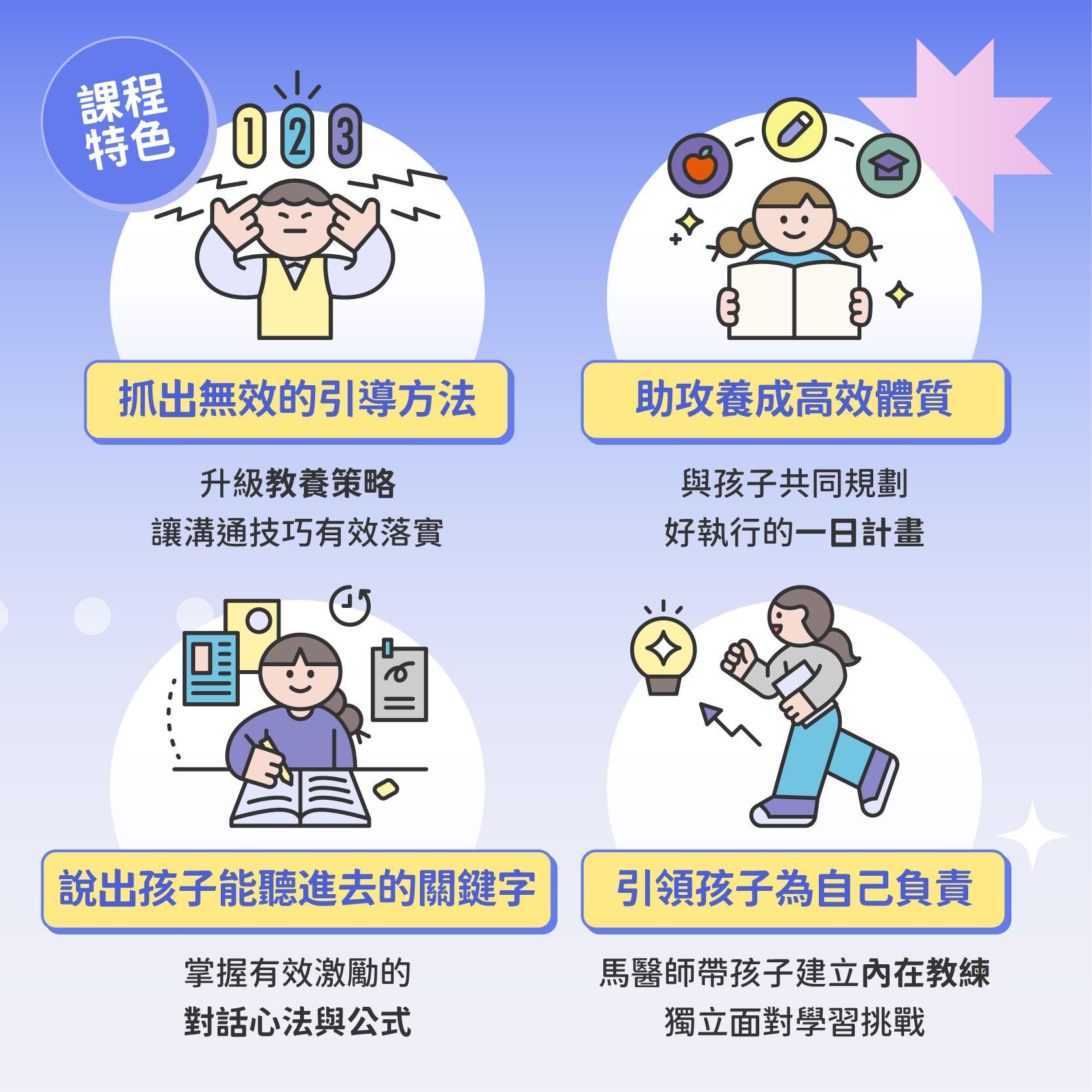 解決親師溝通、夫妻教養理念不一致、孩子選校選系等疑難雜症。