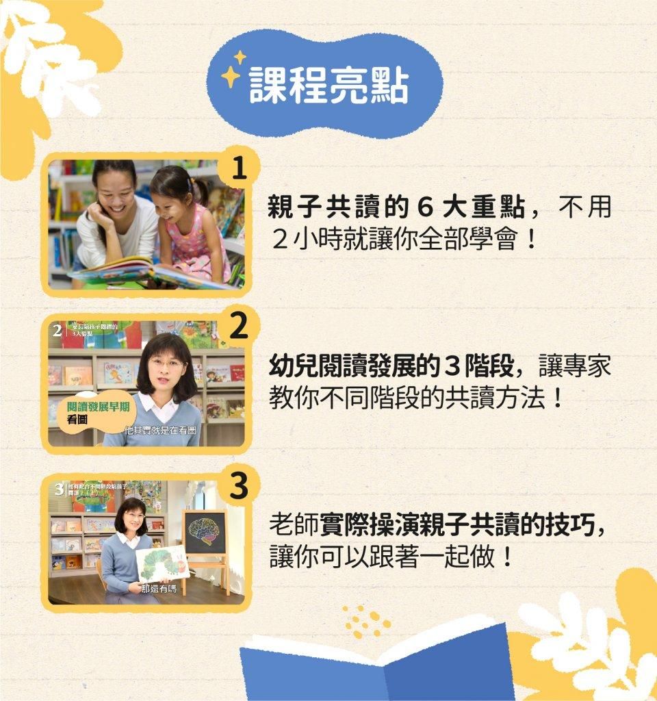 「我小女兒才三個月,我已經試著躺著跟她看繪本...我們試著共讀了一個月左右,累積許多的不足之處,才來購買這門課程,用以修正錯誤、增進技巧及觀念,本課程真的令人茅塞頓開,有些觀念真的需要及早知道。」