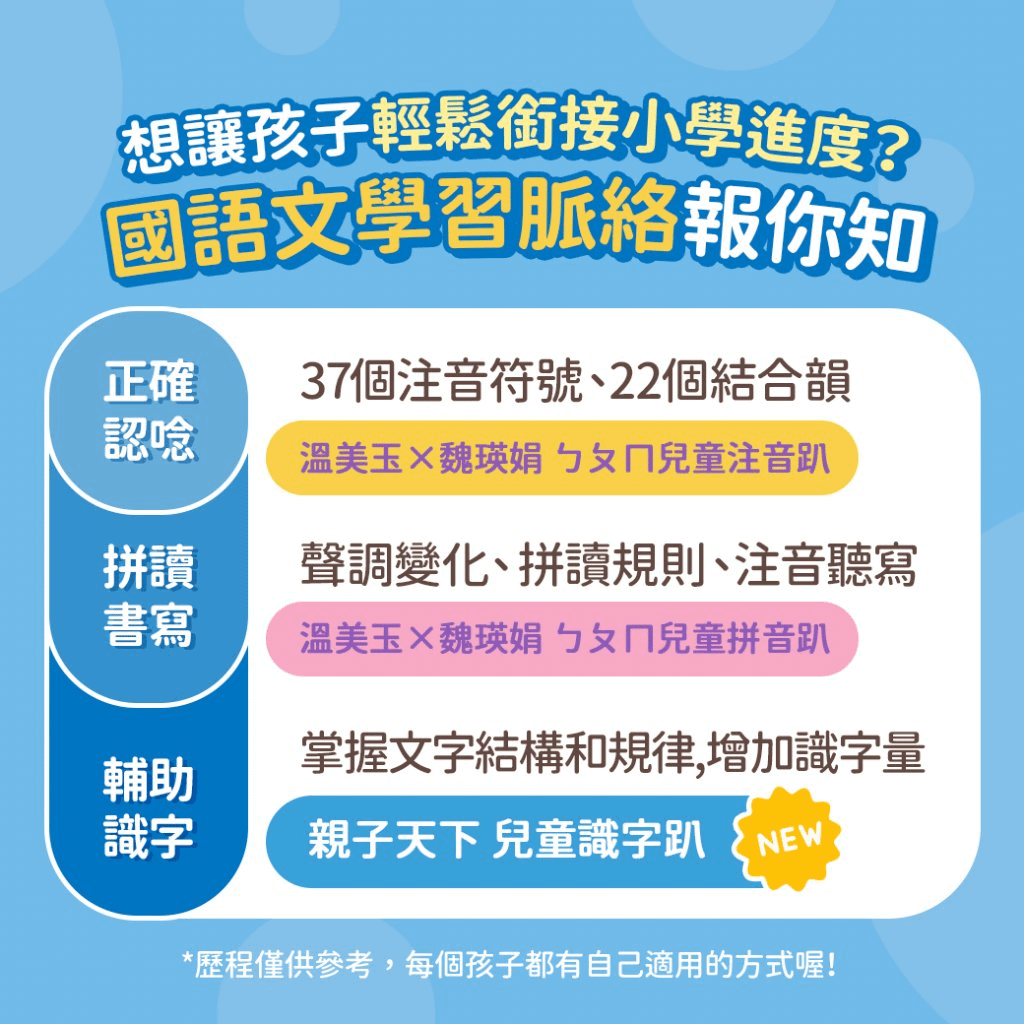 我女兒正要升上幼兒園大班,已經學過注音符號,也練習寫一些筆畫,即將開始簡單認字。