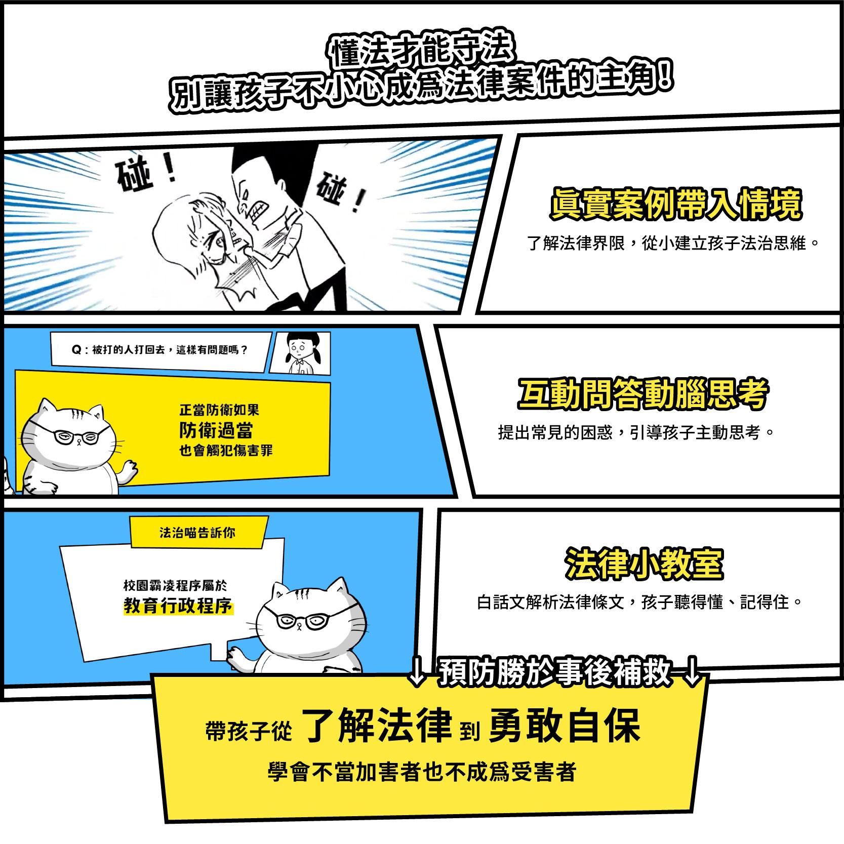 孩子一看就懂 複雜的法律條文透過「法律小教室」單元,以淺顯易懂的白話文拆解,搭配動畫與例子說明, 讓孩子輕鬆理解。
