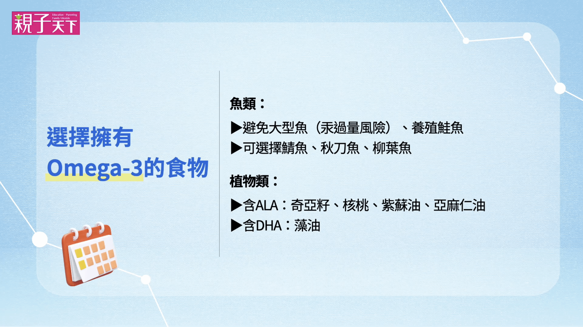 此外,補充抗發炎的營養素,例如Omega-3脂肪酸、鋅與維生素D等,也能有效改善這種體質,促進孩子的大腦健康發展。