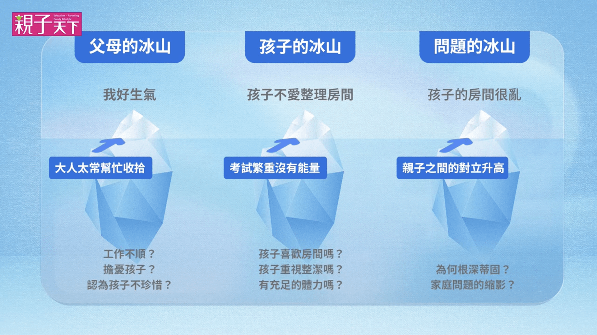 心理學家薩提爾(Virginia Satir)提出的「冰山理論」,強調行為只是「冰山的一角」,真正的動機與情緒往往隱藏在水面之下。